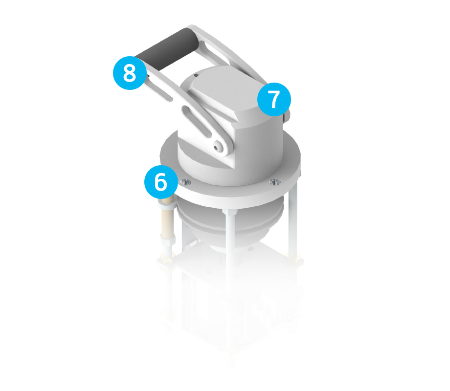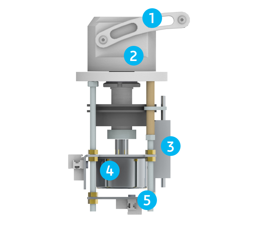 Een robuuste draaikop van geëloxeerd aluminium.
